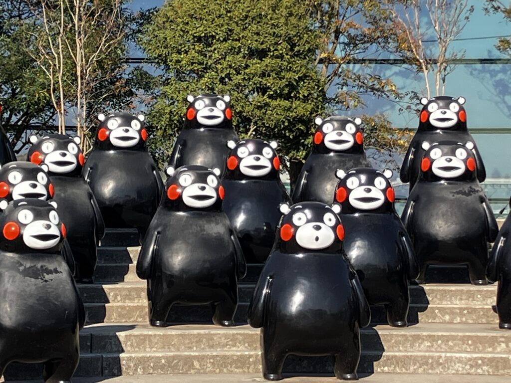 表情の違うくまモンがずらりと並ぶオブジェ群は、かわいいくまモン達なので圧倒されるものではありませんが、独特の存在感があり、大変満足しました。